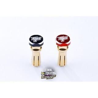■金メッキ処理による電気ロスの抑制 厚膜の金メッキを採用することで通電ロスを最小限に抑制。立ち上がりの鋭さや、トップスピードの伸びを確実に引き出します。■2スリット構造による確実な装着感 プラグ部に設けた2本のスリットが適度なバネ圧を生み出し、5mm端子にしっかりとフィット。振動による接触不良を防止します。■ローヘッドアルミビス(SKTロゴ入り)付属 ブフック/レッドのアルマイトビスを各1本ずつ付属。指先で締め付けられる設計で、エ具不要の簡単装着。視認性と作業性を両立します。■5mm Lipoバッテリー端子に最適化 現在の主流である5mm径端子にジャストフィットする設計。繰り返しの抜き差しでも安定した装着感が得られ、競技ユースでも安心です。セット内容 金メッキ5mmバレットプラグX2 ローヘッドアルミビス(ブラック/レッド各1)
